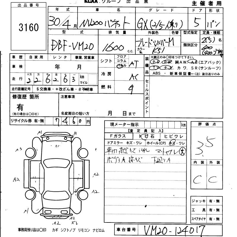 NISSAN NV200 VANETTE VAN - лот 3160