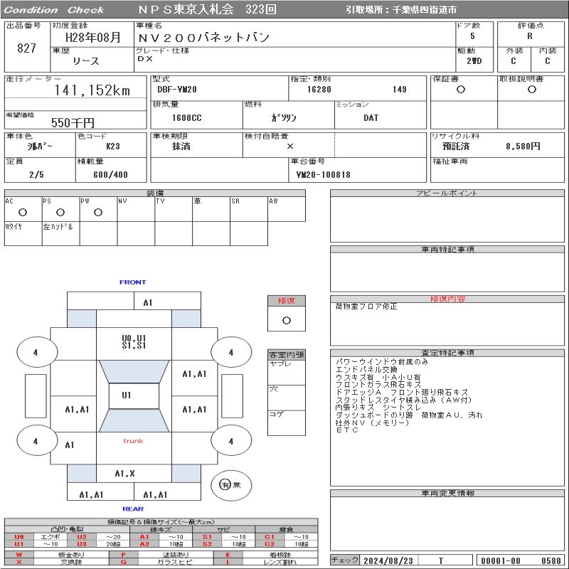 NISSAN NV200 VANETTE VAN - лот 827