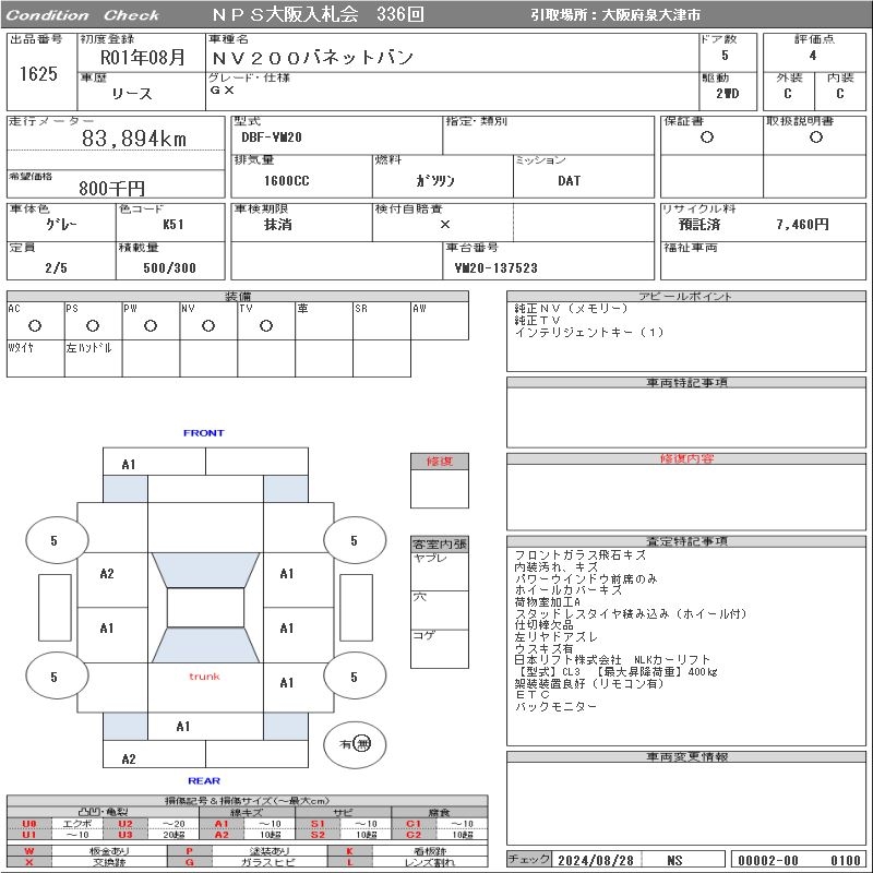 Все аукционы NISSAN NV200 VANETTE VAN