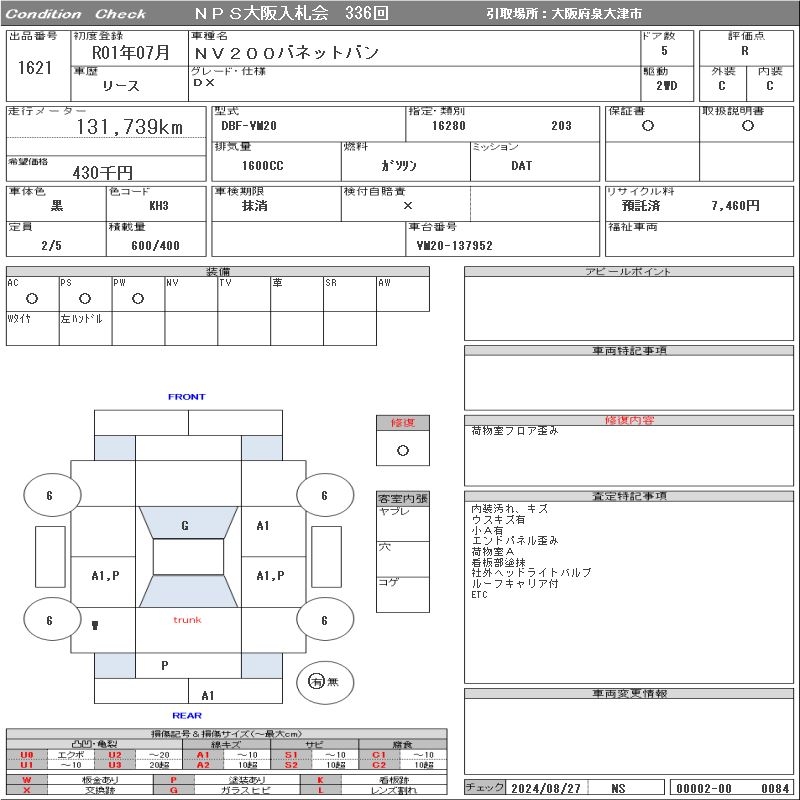 NISSAN NV200 VANETTE VAN - лот 1621