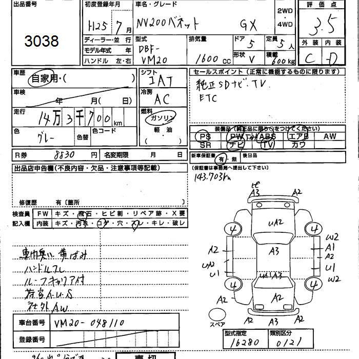 NISSAN NV200 VANETTE VAN - лот 3038