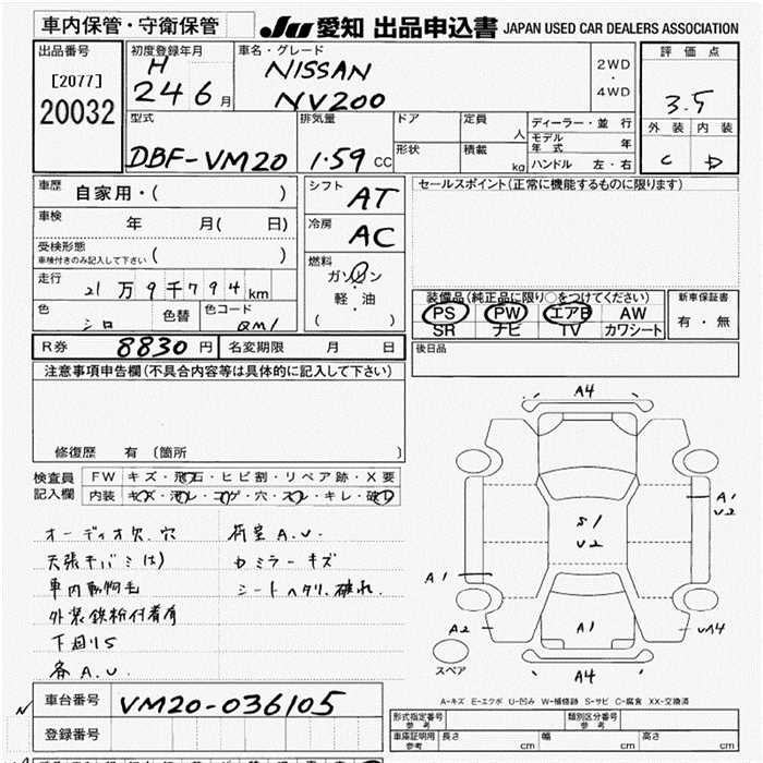 Все аукционы NISSAN NV200 VANETTE VAN