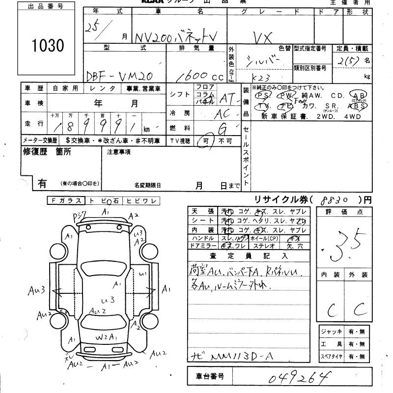 NISSAN NV200 VANETTE VAN - лот 1030