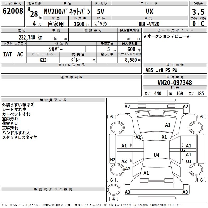 NISSAN NV200 VANETTE VAN - лот 62008