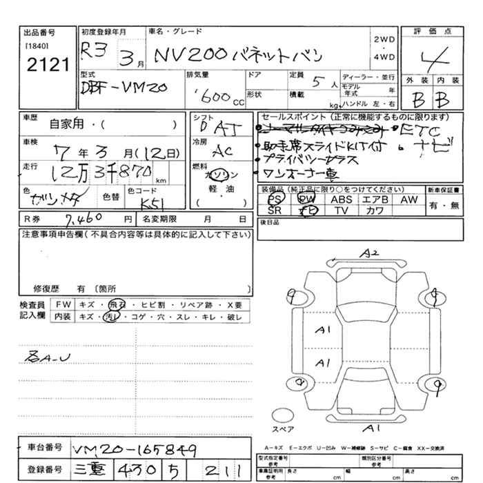Все аукционы NISSAN NV200 VANETTE VAN