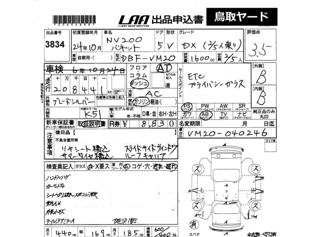 NISSAN NV200 VANETTE VAN - лот 3834