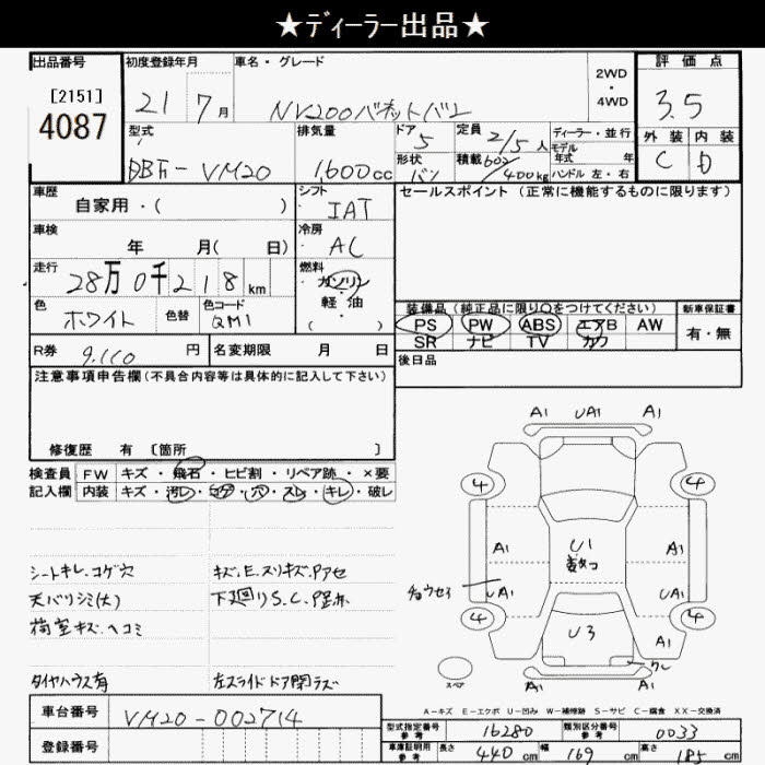 Все аукционы NISSAN NV200 VANETTE VAN
