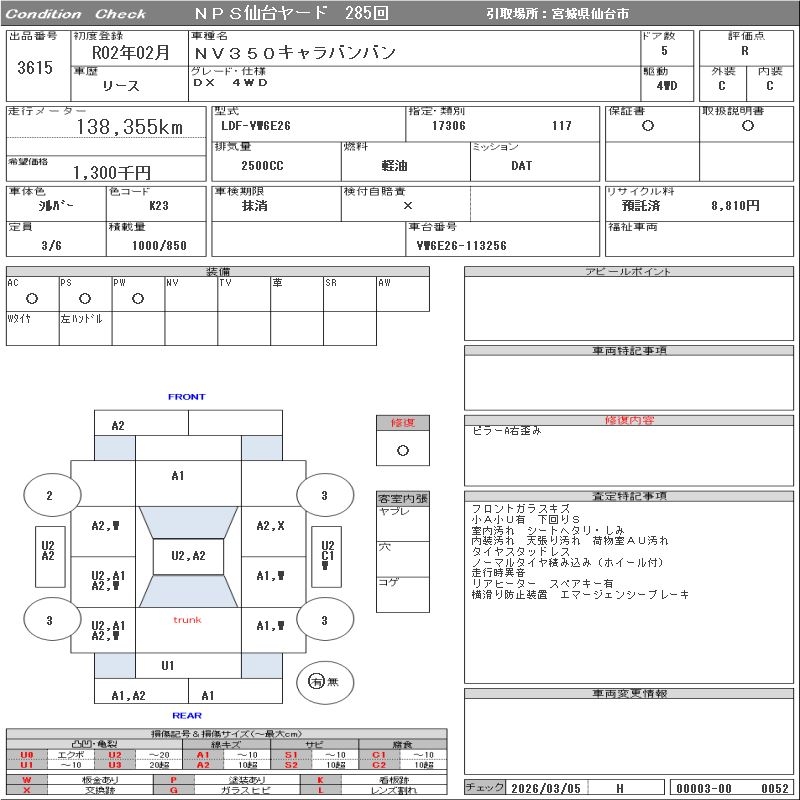 NISSAN NV350 CARAVAN - лот 3615