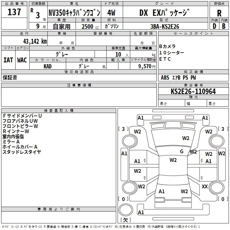 NISSAN NV350 CARAVAN WAGON DX EX package - лот 137
