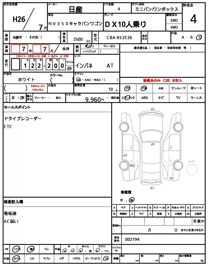 NISSAN NV350 CARAVAN WAGON - лот 54512