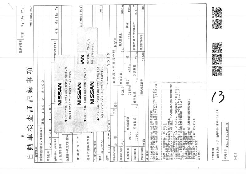 NISSAN NV350 CARAVAN - лот 3612