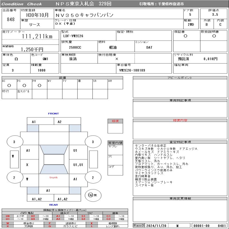 NISSAN NV350 CARAVAN - лот 848