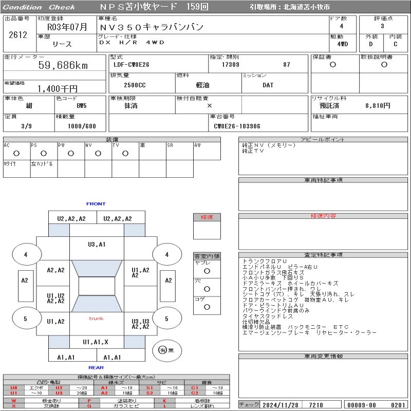 NISSAN NV350 CARAVAN - лот 2612