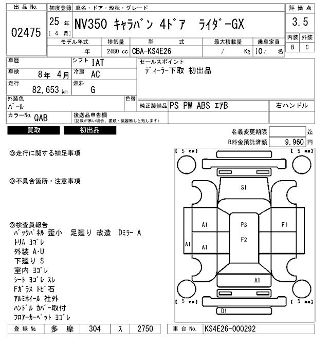 NISSAN NV350 CARAVAN - лот 2475