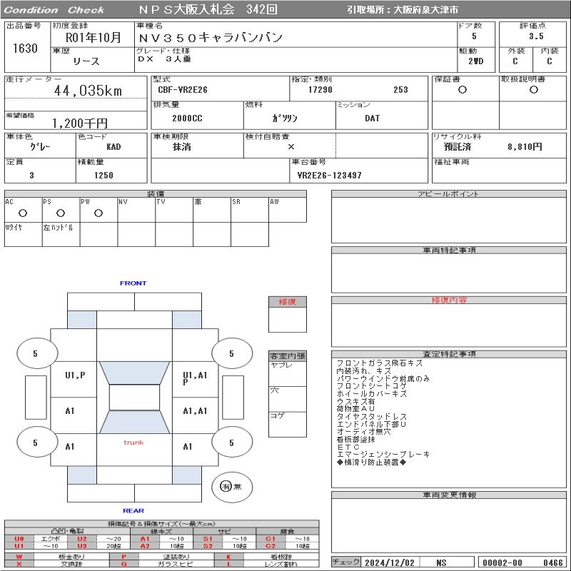 NISSAN NV350 CARAVAN - лот 1630