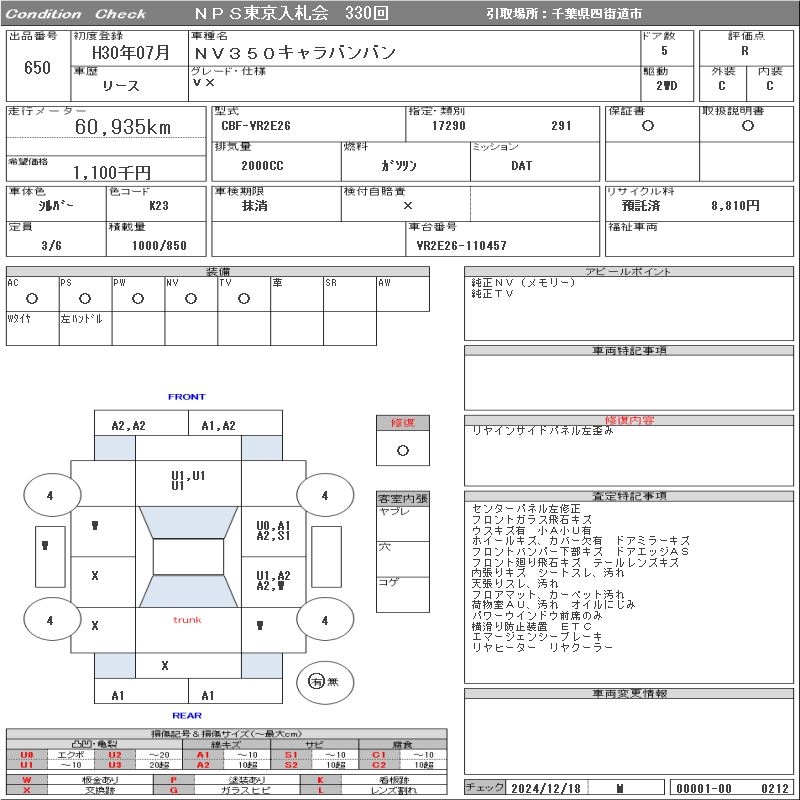 NISSAN NV350 CARAVAN - лот 650
