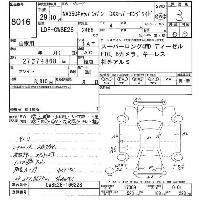 NISSAN NV350 CARAVAN 4WD DX SUPER LONG WIDE - лот 8016