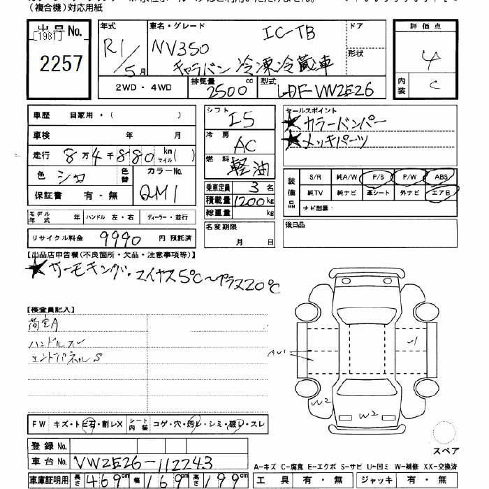 NISSAN NV350 CARAVAN REFRIGERATOR CAR IC-TB - лот 2257