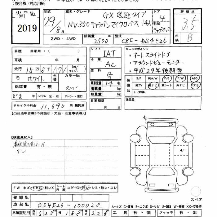 NISSAN NV350 CARAVAN MICROBUS GXSOUGEI TYPE 14 PERSON - лот 2019