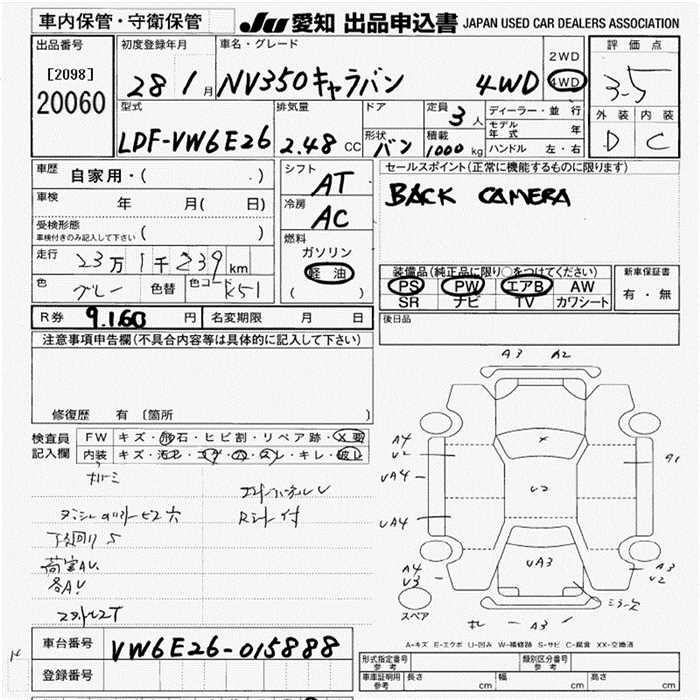 NISSAN NV350 CARAVAN 4WD 3 PERSON - лот 20060