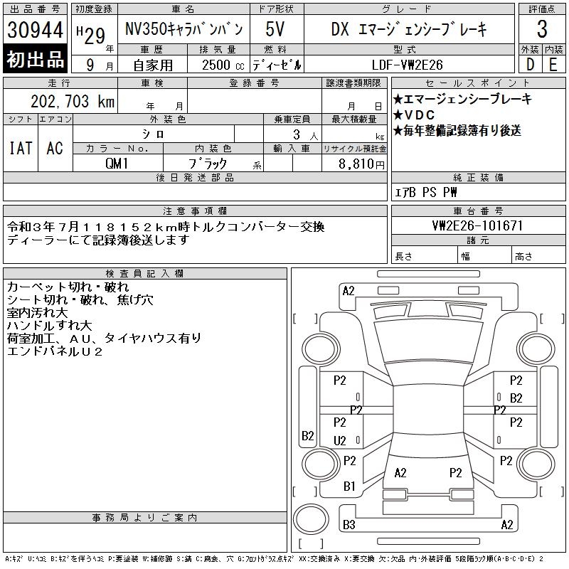 NISSAN NV350 CARAVAN DXEMA-JENSI- BRAKE - лот 30944