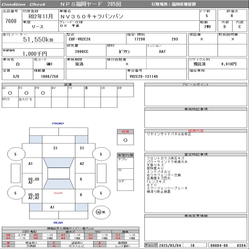 NISSAN NV350 CARAVAN DX/ HIRATOKO - лот 7608