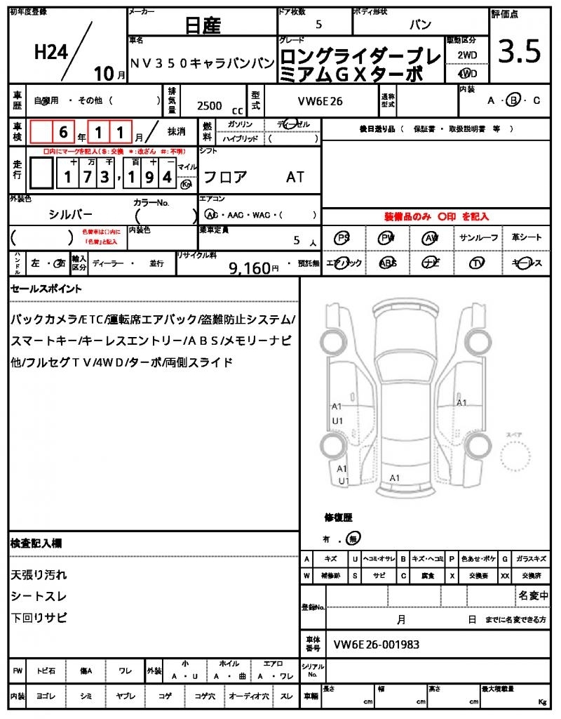 NISSAN NV350 CARAVAN - лот 9630