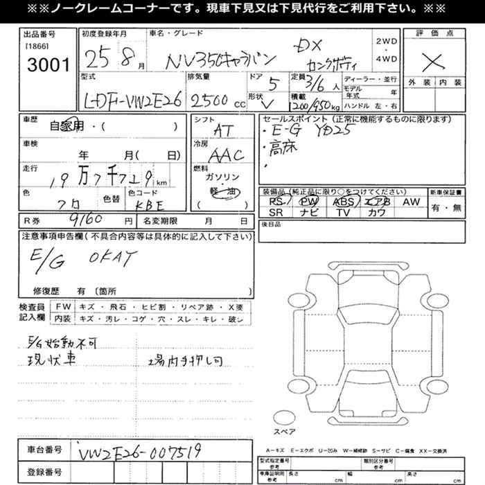 NISSAN NV350 CARAVAN DX LONG BODY - лот 3001