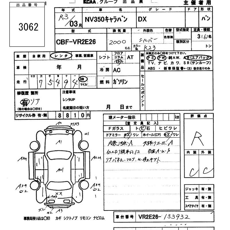 NISSAN NV350 CARAVAN DX - лот 3062