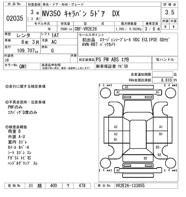 NISSAN NV350 CARAVAN DX - лот 2035