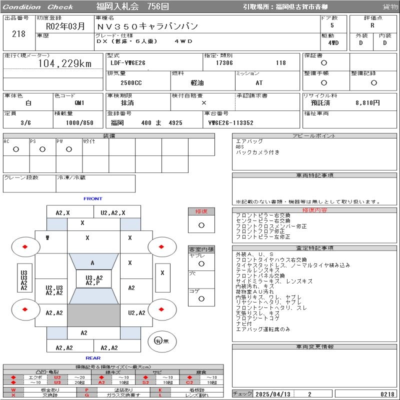 NISSAN NV350 CARAVAN DX( LOW FLOOR *6 NUMBER OF SEATS ) 4WD - лот 218