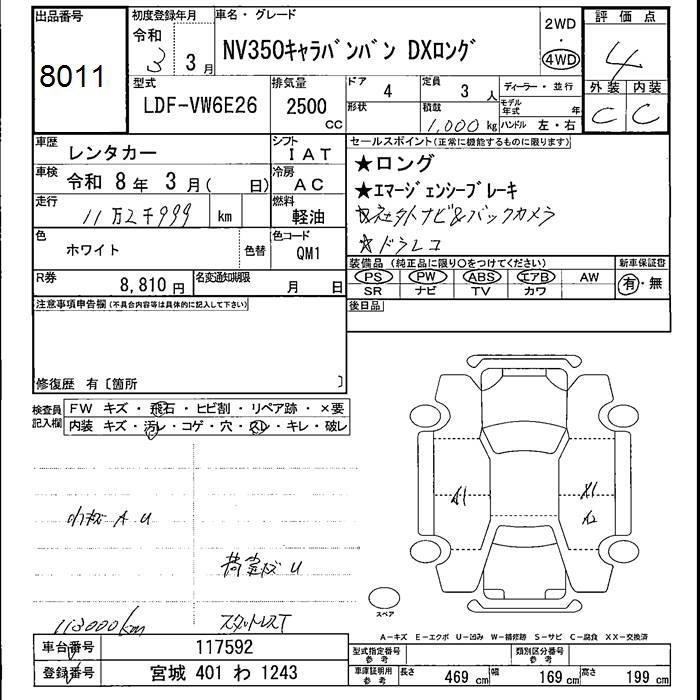 NISSAN NV350 CARAVAN 4WD DX LONG - лот 8011