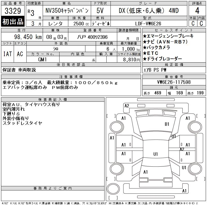 NISSAN NV350 CARAVAN DX( LOWDECK *6 SEAT ) 4WD - лот 3329