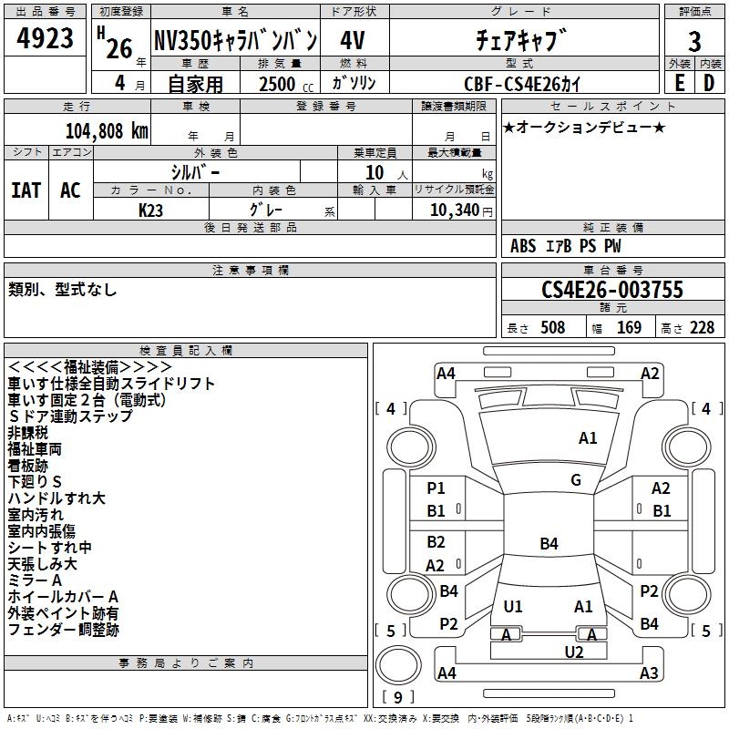 NISSAN NV350 CARAVAN CHAIR CAB - лот 4923