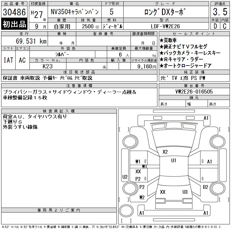 NISSAN NV350 CARAVAN LONG DX TURBO - лот 30486