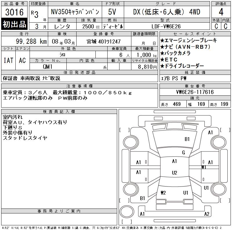 NISSAN NV350 CARAVAN DX( LOWDECK *6 PERSON ) 4WD - лот 3016