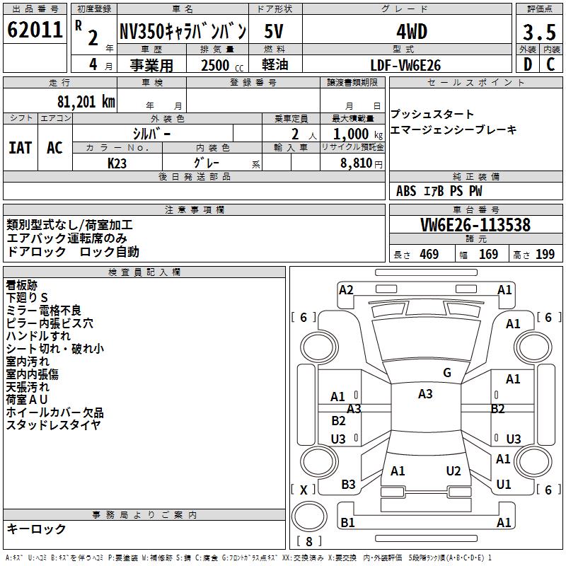 NISSAN NV350 CARAVAN 4WD - лот 62011