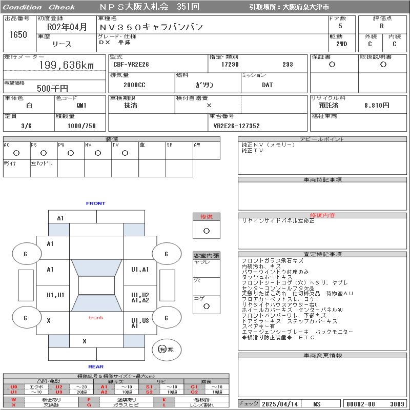 NISSAN NV350 CARAVAN DX HIRATOKO - лот 1650