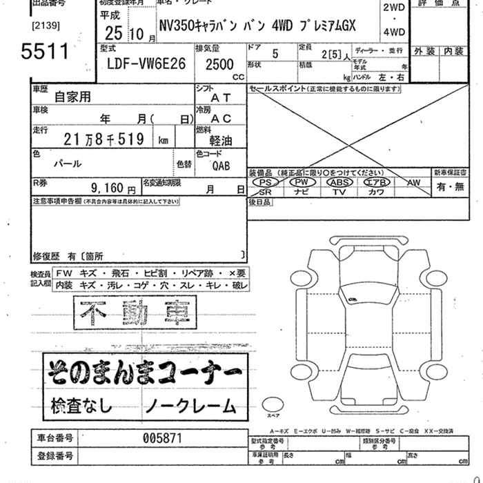 NISSAN NV350 CARAVAN 4WD PREMIUM GX - лот 5511