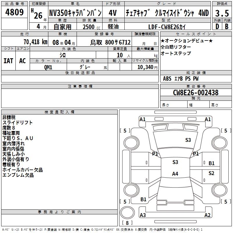 NISSAN NV350 CARAVAN CHAIR CAB KRU MY ACID DO4WD - лот 4809