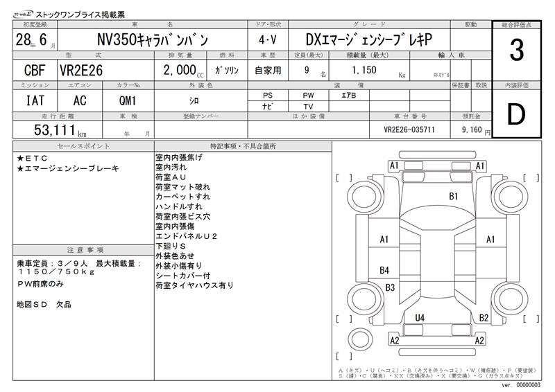 NISSAN NV350 CARAVAN - лот 20802