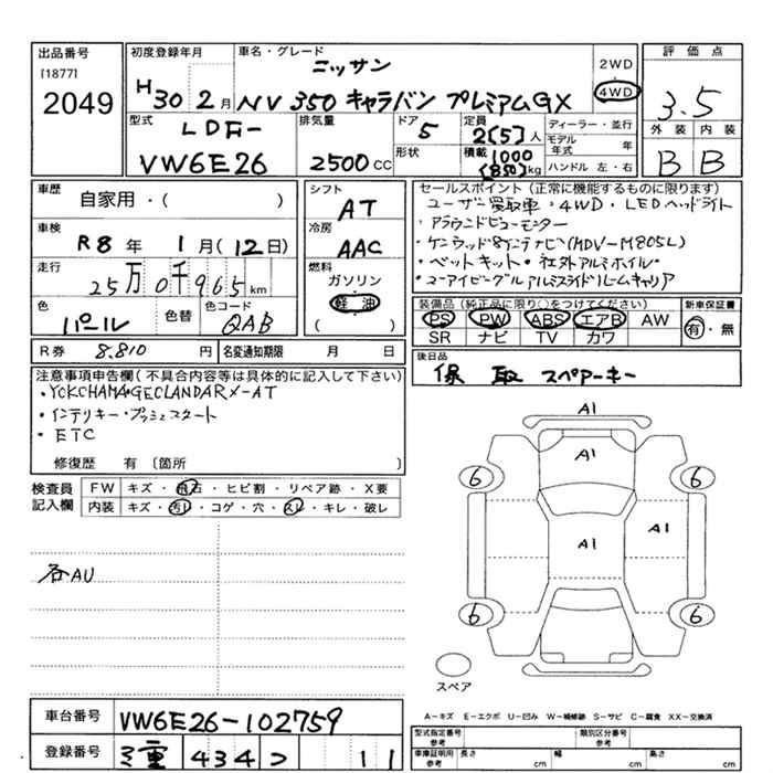 NISSAN NV350 CARAVAN 4WD PREMIUM GX - лот 2049