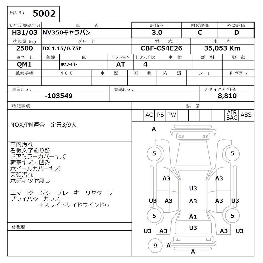 NISSAN NV350 CARAVAN DX 1.15/0.75t - лот 5002