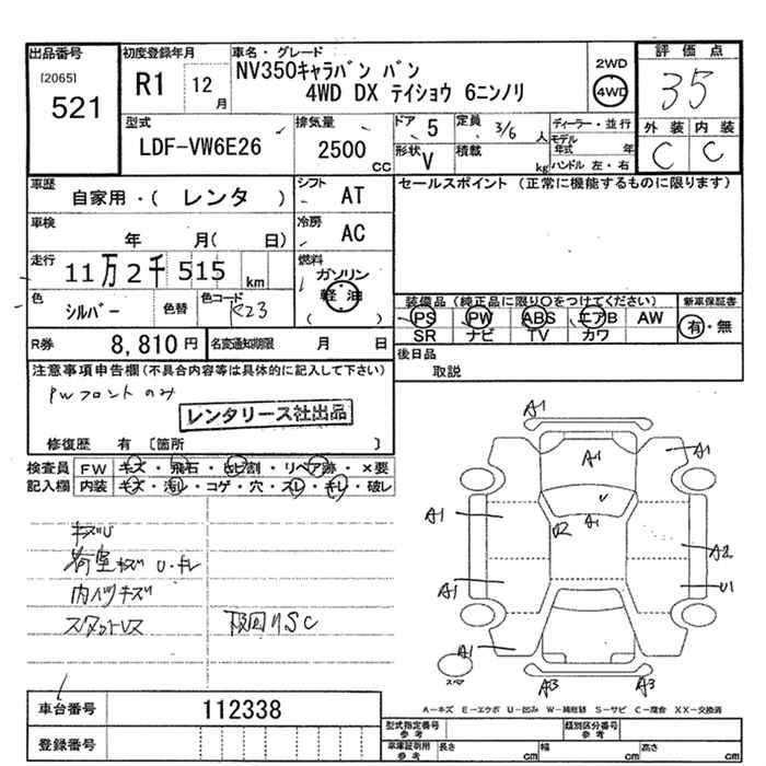 NISSAN NV350 CARAVAN 4WD DX LOWDECK 6 SEAT - лот 521