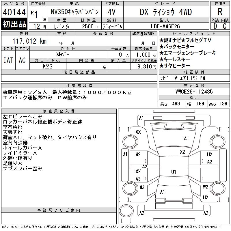 NISSAN NV350 CARAVAN DX LOWDECK 4WD - лот 40144