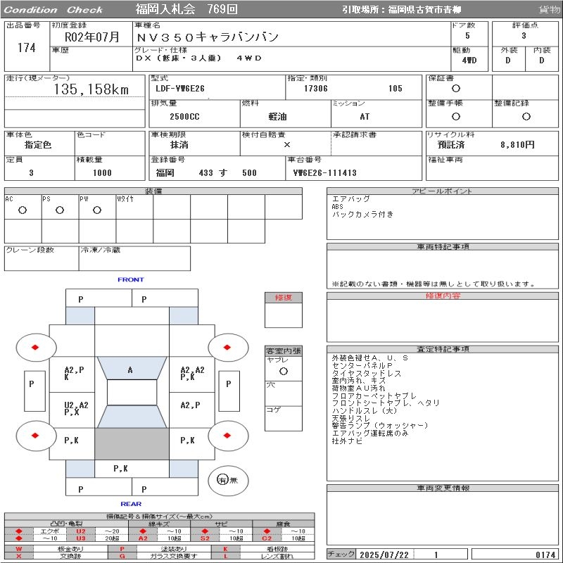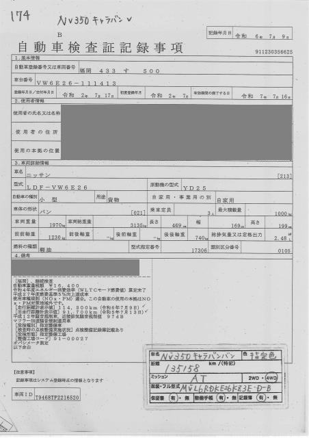 NISSAN NV350 CARAVAN DX( LOW FLOOR *3 NUMBER OF SEATS ) 4WD - лот 174