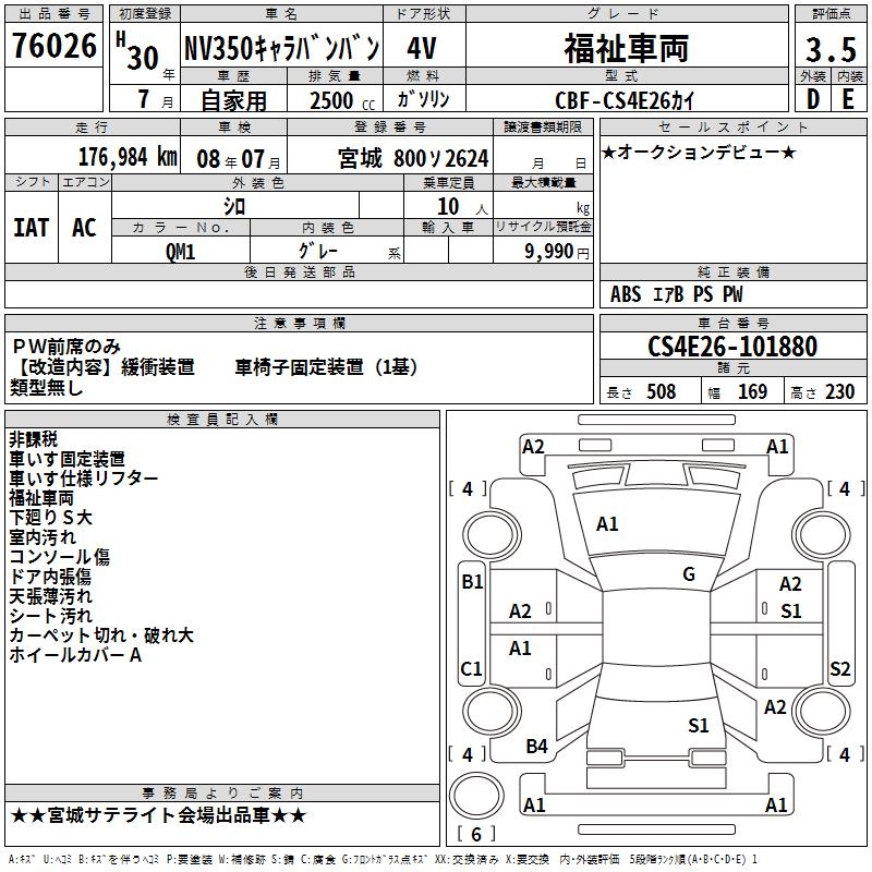 NISSAN NV350 CARAVAN WELLFARE CAR - лот 76026