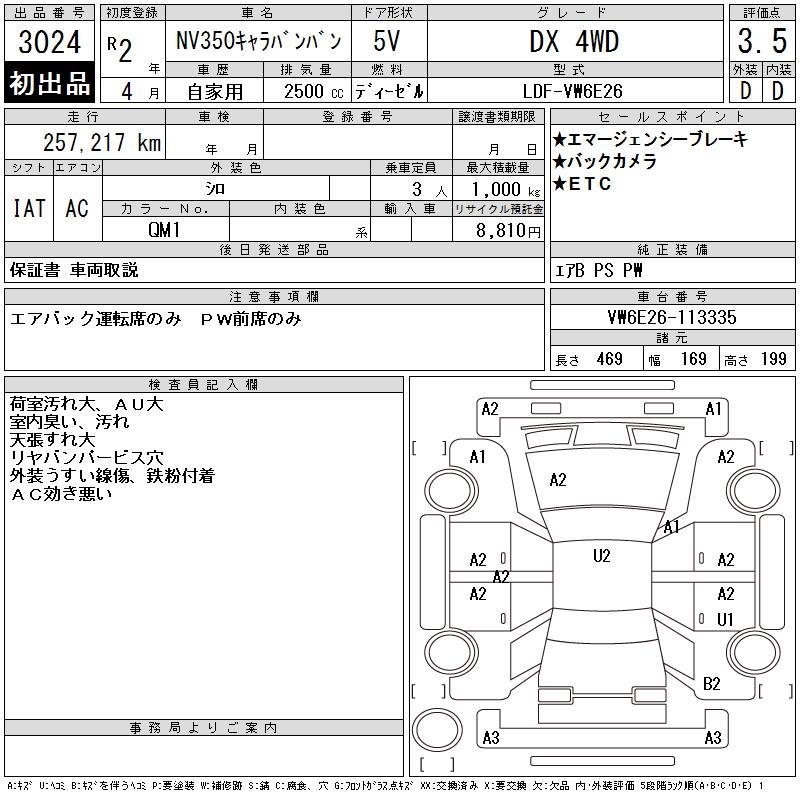 NISSAN NV350 CARAVAN DX 4WD - лот 3024