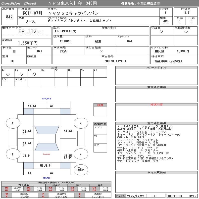 NISSAN NV350 CARAVAN CHAIR CAB [ WHEELCHAIR 1+1 NAME SPECIFICATION ]H/R - лот 842