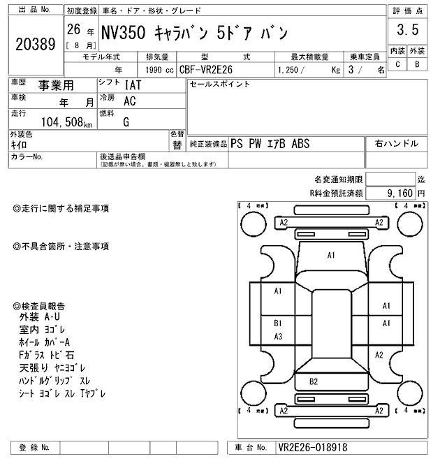 NISSAN NV350 CARAVAN VAN - лот 20389